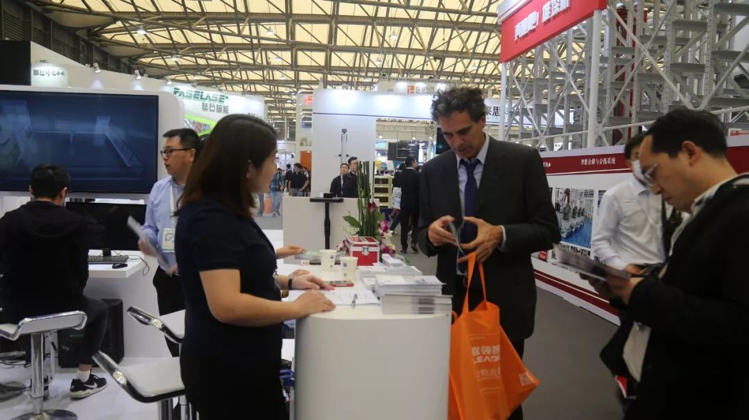 在展会现场,意欧斯自研的两款堆垛机式AGV:TL12和TL16以及AGV调度系统首次亮相,吸引众多观众驻足观看,获得一致好评。