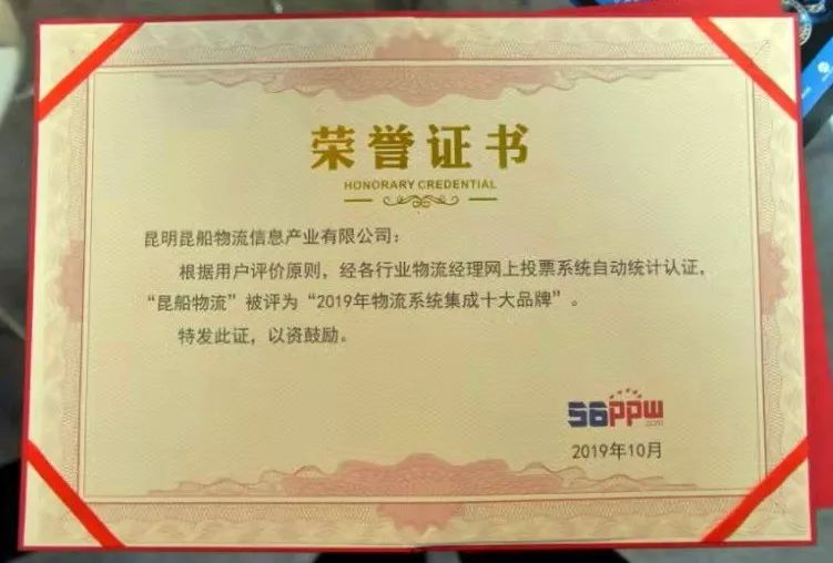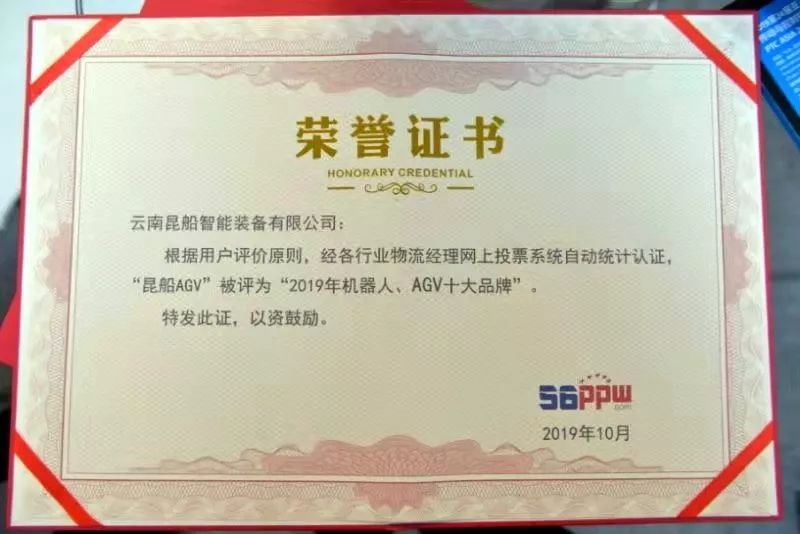 昆明昆船物流信息产业有限公司被评为“2019年物流系统集成十大品牌”、云南昆船智能装备有限公司被评为“2019年机器人、AGV十大品牌”。