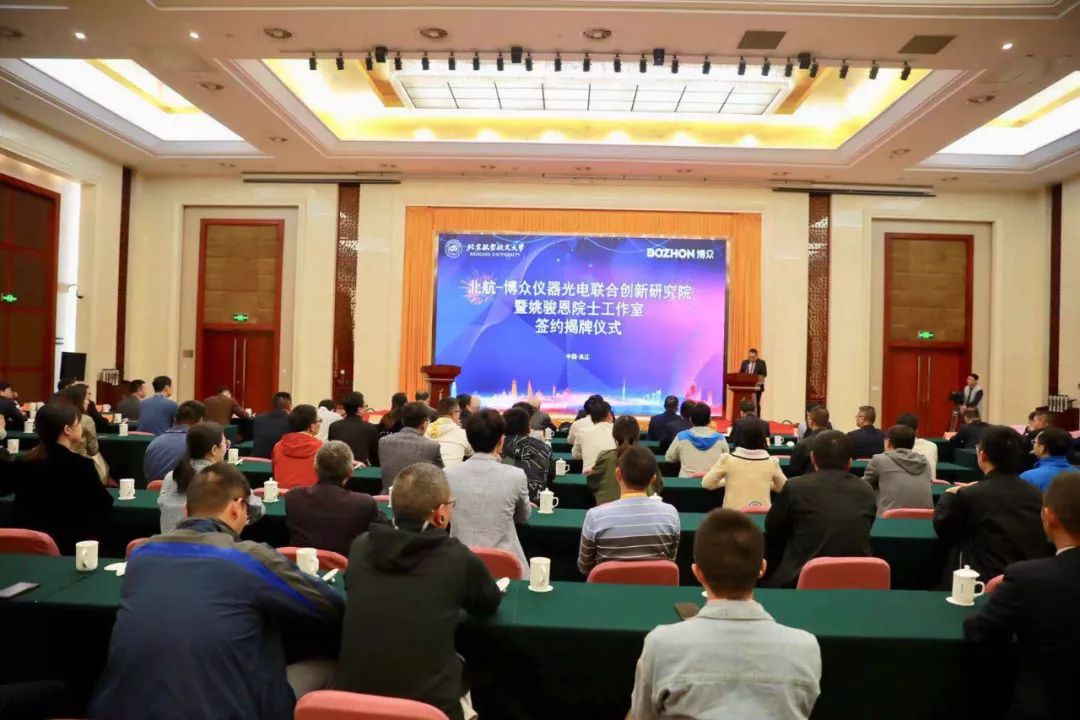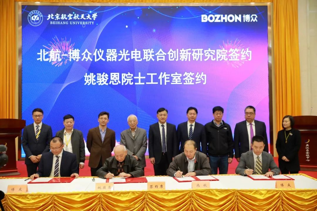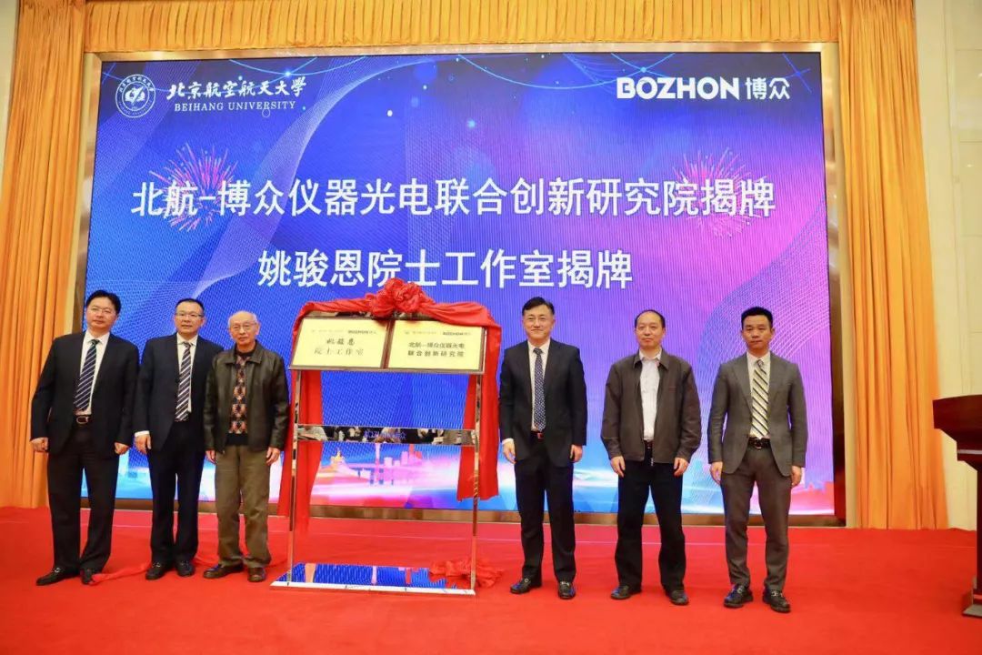 2019年10月26日,北航-博众仪器光电联合创新研究院暨姚骏恩院士工作室签约揭牌仪式在吴江区隆重举行,这标志着北航与博众、吴江区开展全面、深度合作的开始。