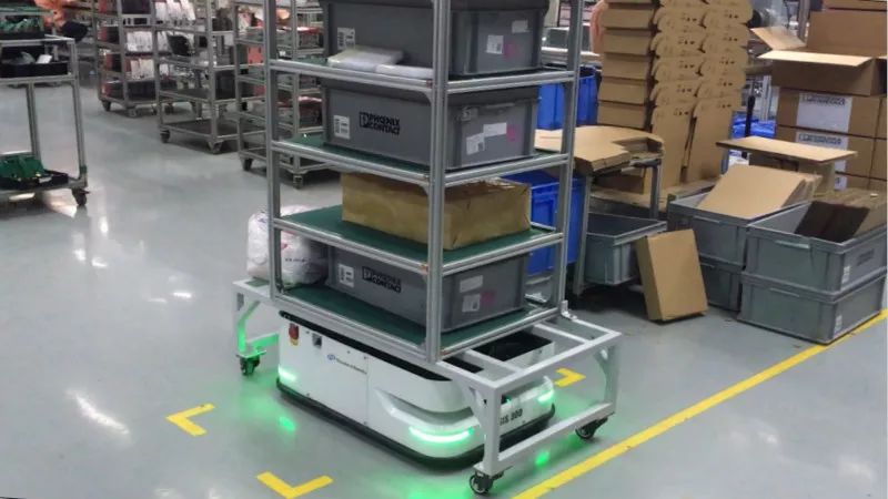 配合FMS(Fleet Management System)机器人调度管理系统,基于激光导航AGV的斯坦德解决方案还具有多种物料、跨产线、跨区域的物料搬运与管理能力。在某3C电子物料搬运案例中,基于6台Oasis300UL、80台料车、FMS管理系统等组成自动化料车搬运系统,需要满足为1个仓库、2个生产车间全天候配送物料的需求,同时面临人员走动频繁、用具堆放杂乱等问题。斯坦德针对现场环境情况,从技术上对方案进行了针对性开发,并通过人员操作培训,实现了降低人员配送、大幅提高物料周转率的良好应用效果,实现了物料配送的自动化及精益生产的半自动化。