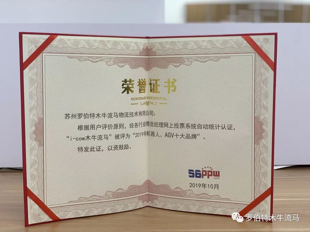 同期由物流品牌网举办的2019物流技术装备十大品牌颁奖典礼上,凭借在高品质的产品和服务,经过制造业、服装、食品、医药、商贸等各行业物流经理人在线投票,“木牛流马”荣获“2019年机器人 AGV十大品牌”奖,此项荣誉,代表着“木牛流马”的产品与服务得到了客户的认可与肯定。“木牛流马”将继续秉承“世界级 中国造”的产品理念,不断研发创新,为客户提供最专业、最稳定、最可靠的工业车辆无人驾驶解决方案。