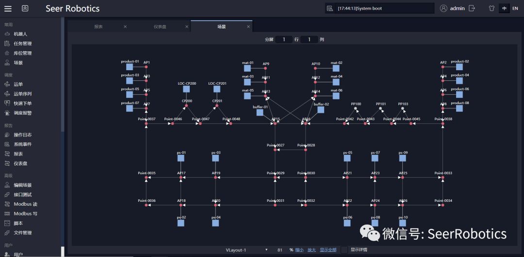 可视化管理系统RoboGlue作为一款信息系统,亮相在物流展现场十分耀眼。它不仅能实时展示移动机器人运行路线及运行状态,还能实时显示整场的物流状况,将展会现场的移动机器人运动场景、业务订单情况等诸多信息实时展现出来,让观众大开眼界。