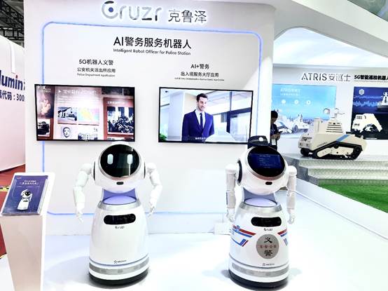 AI警务服务机器人Cruzr(克鲁泽)此次带来“5G机器人义警”及“AI+警务”的智慧警务应用案例。