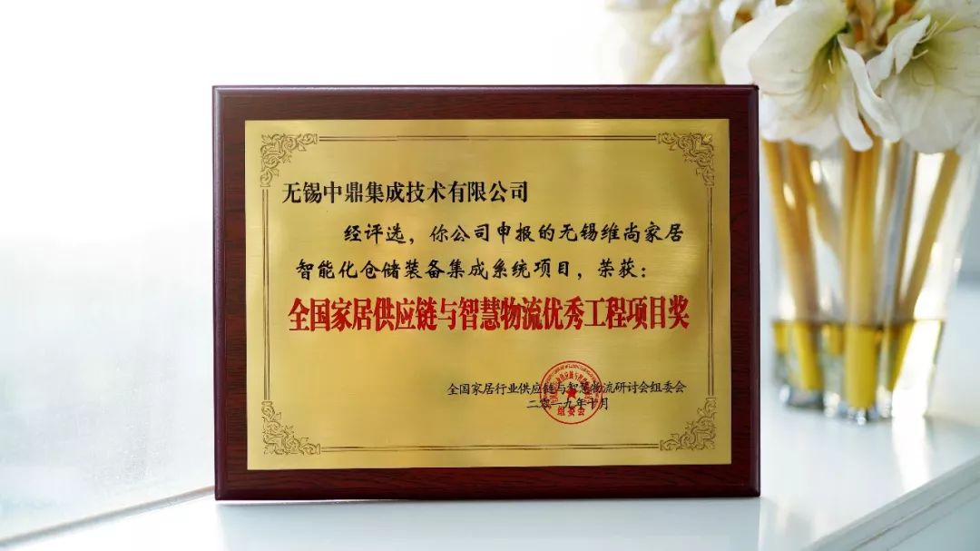 无锡维尚家居智能化仓储装备集成系统项目成为标杆案例,荣获“2019 全国家居供应链与智慧物流优秀工程项目奖”。