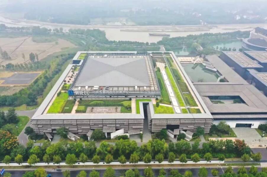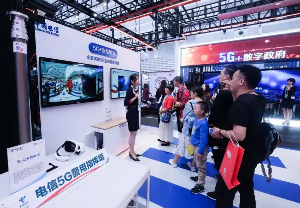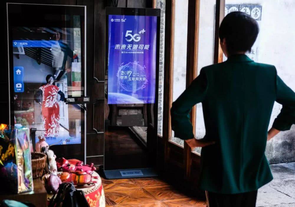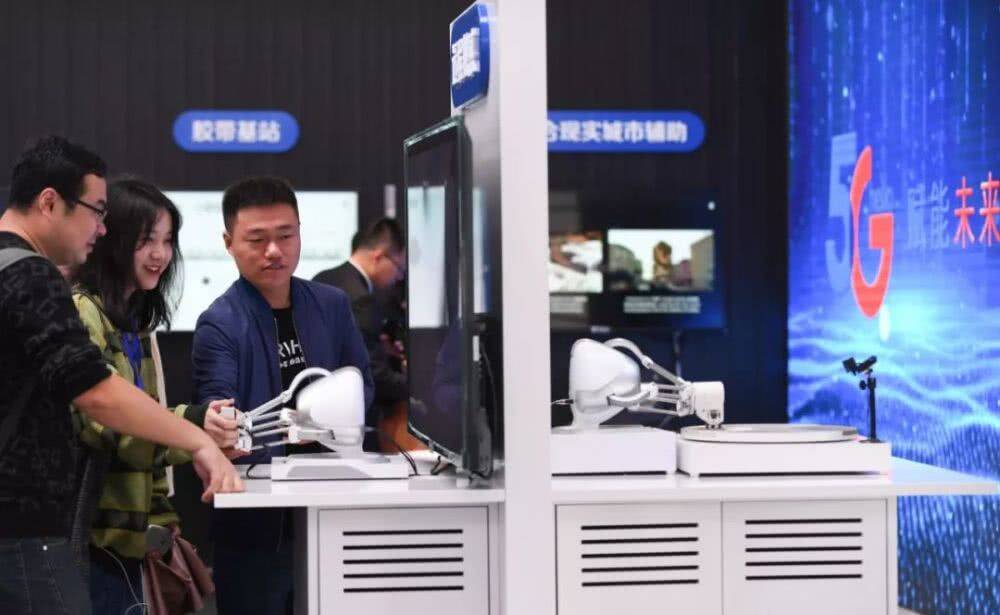 参观者在互联网之光博览会上体验基于5G技术的远程触感