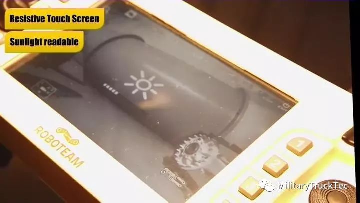该控制模块有一块7寸的电阻式显示屏,即便是带着手套也可以随意触控,其分辨率达到1024×600,该显示屏具有强光下依然可视成像的能力,并支持在红外设备下成像的功能。