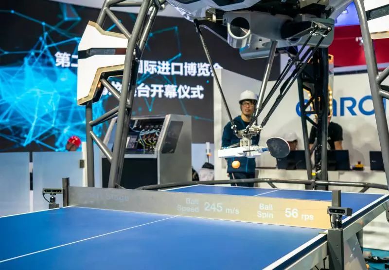 大长腿、大眼睛、气质低调睿智、动作迅捷有力......近日,明星机器人——日本欧姆龙FORPHEUS乒乓球机器人再次亮相进博会高端装备馆。今年的FORPHEUS乒乓球机器人在多个方面全新升级。升级的摄像头和传感器、更高阶的人工智能和机器学习、高速高精度的同步传感、六轴机械臂花式削球等技能让它的球技更加炉火纯青。