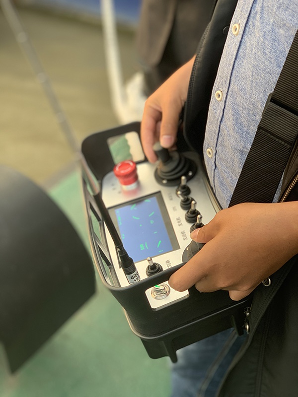 工作人员演示无人驾驶船操控