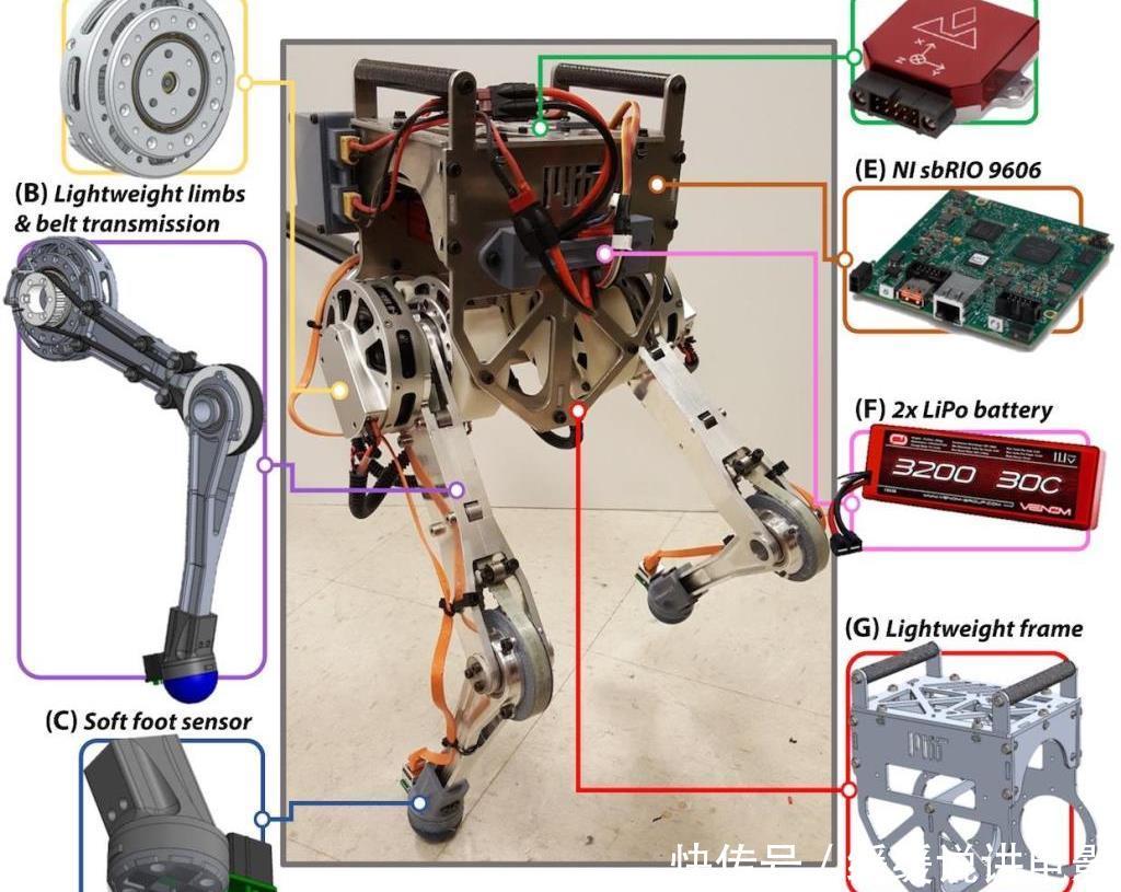 “小爱马仕”双足机器人的主要部件,图片来自: Science Robotics