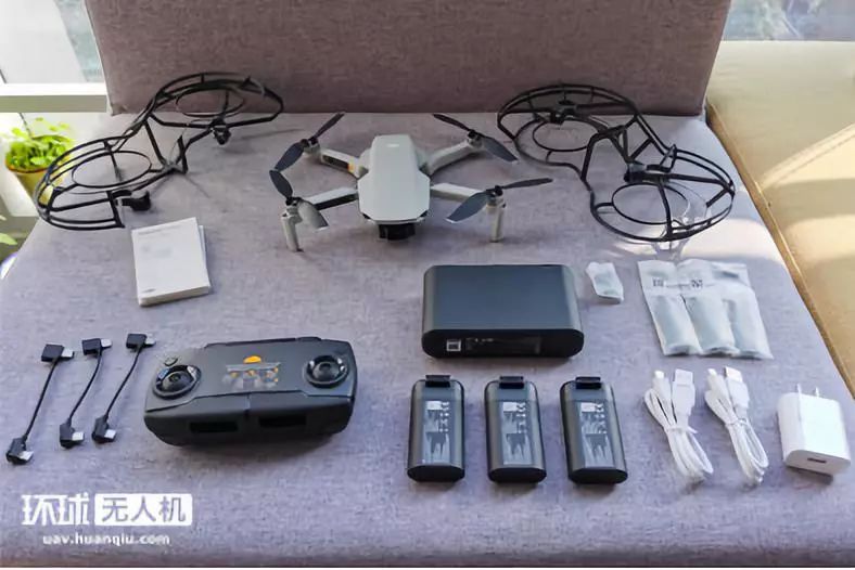 老规矩,收到新机先要开箱把玩一番。我们拿到的是售价3399元的“畅飞套装”,包含3块智能飞行电池、3对备用桨叶、双向充电管家、全向桨叶保护罩、充电器及配套收纳包。正所谓“小孩子才做选择,成年人当然是全都要”,套装不贵而且配件实用,小编建议买就买全套。