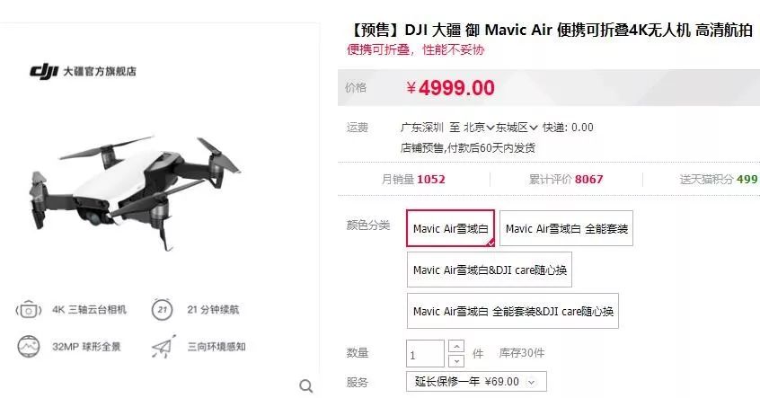 就大疆全系而言,Mavic Mini是最便宜的选择。像Mavic Air裸机售价也有4999元,Mavic 2则达到了万元级。而据小编的调查,非发烧友对价格很敏感。