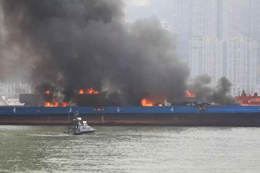 11月15日,由交通运输部与重庆市人民政府联合主办的长江干线水上联合搜救演习在重庆涪陵区黄旗码头水域成功举行。两船相撞、人员遇险落水、船舶起火及燃油外溢、集装箱沉没……一个个模拟的惊险事故接连发生,来自交通运输系统和重庆市的31家单位、32艘船艇、300余人组织有序、协同作战、快速处置各种模拟险情,在三峡库区上演了一幅“沙场秋点兵”的壮观图景。
