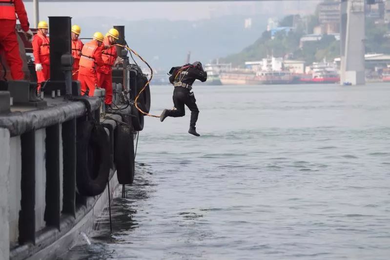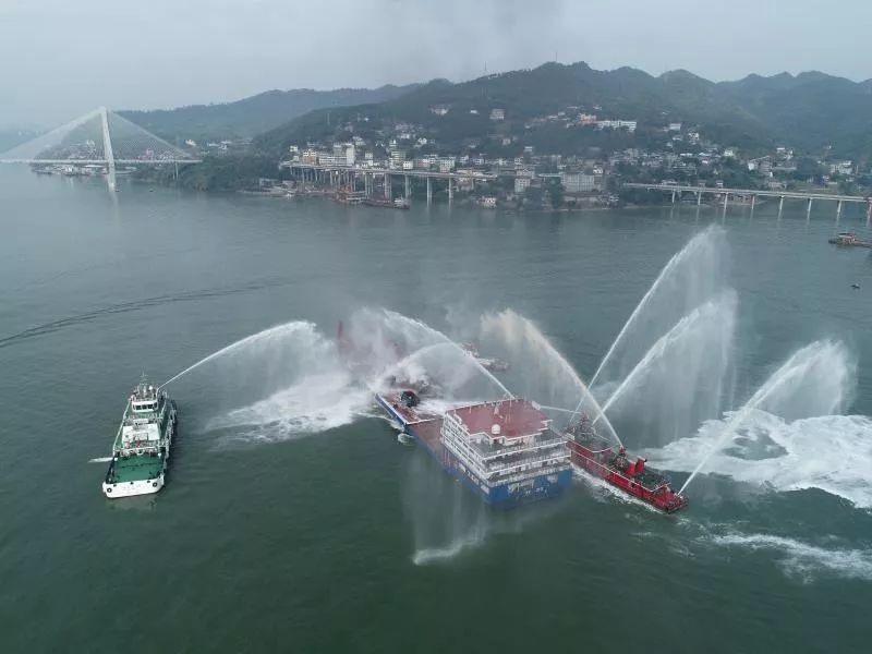 演习过程中,全体参演人员沉着冷静、规范操作,有效完成了落水人员搜救与遇险人员转移、船舶灭火救援、船舶溢油处置、航道应急抢通、深潜设备远程快速投送、沉物打捞等6个演习科目的演练。