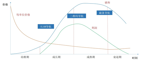 而随着行业不断成长、成熟,利润会持续走低。目前来看,磁条小车已经非常成熟,其利润也已经被压榨到最低,二维码小车目前处于鼎盛期,替代磁条小车,成为主流已然可见。