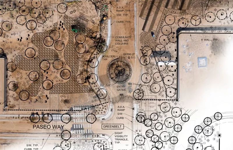 2017年,DPA工作室对亚利桑那州凤凰城一块25英亩的土地进行了视觉评估。该场地以前是一片柑橘农场和棕榈树苗圃,现场有许多的构筑物,包括复杂的平房、灌溉渠和农业设备。
