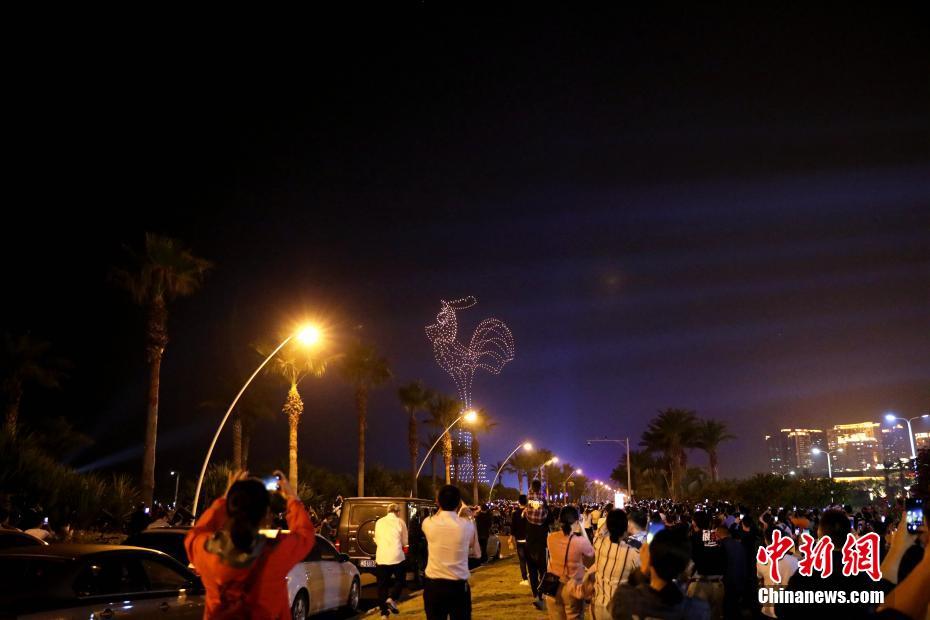11月17日晚,在厦门会展中心沙滩,1200架无人机腾空而起以黑夜为背景,伴随音乐节奏变换出各种造型,迎接即将到来的第28届金鸡百花电影节。图为大量市民前往围观。