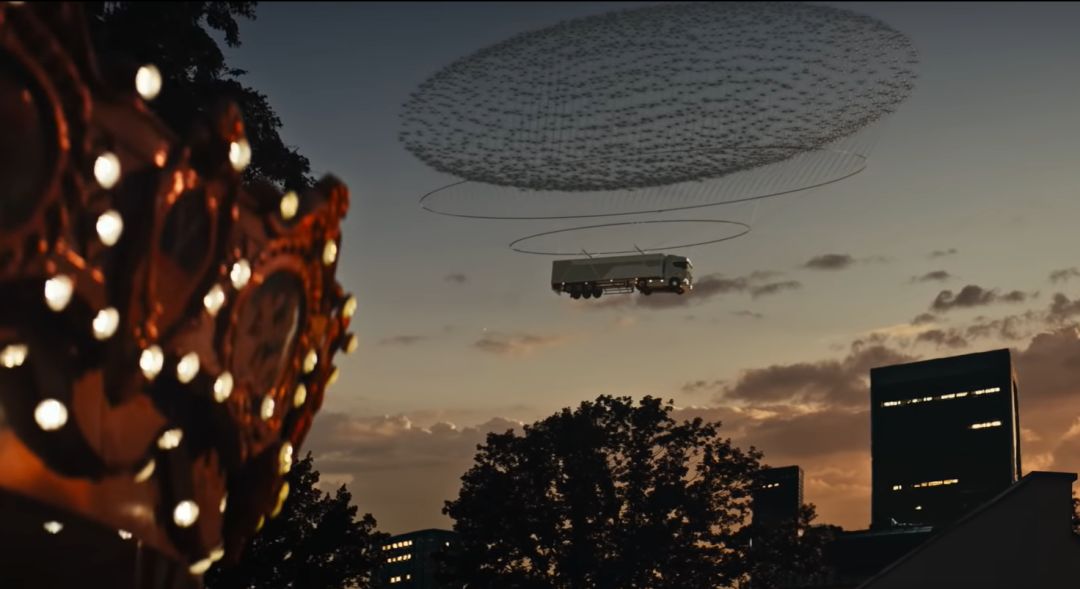 无人机网援引外媒消息称,9月底,斯堪尼亚(Scania) 发布了官方视频,其中一辆卡车被众多无人机吊起。在现场,卡车高高地飞过公路和建筑物,引起了市民的围观,直到它最终到达目的地并安全降落在跑道上。