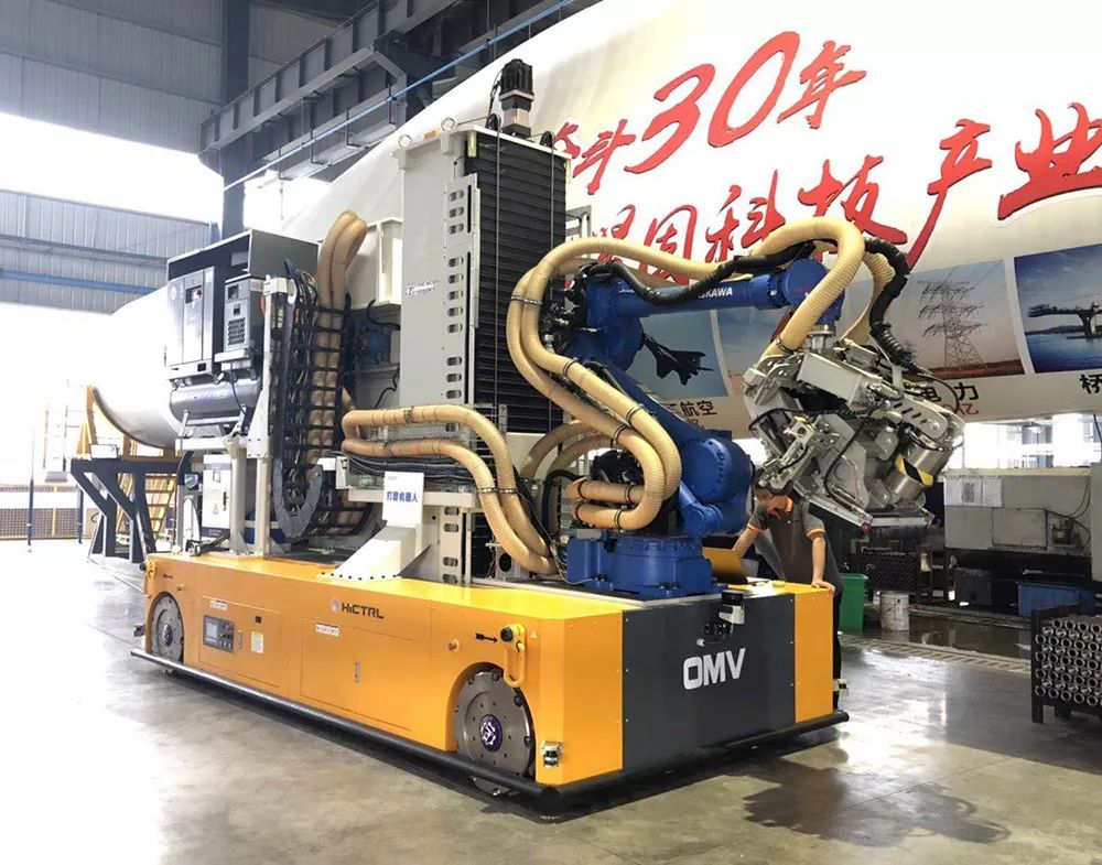 由于风力发电机叶片尺寸大、曲面复杂,打磨抛光十分不易,长期以来一直依靠人工打磨,人工打磨效率低、劳动强度大、打磨质量难以保证且粉尘污染严重,作业环境恶劣。将打磨机器人引入风电叶片生产线上,可以有效提高打磨效率、改善车间打磨环境。