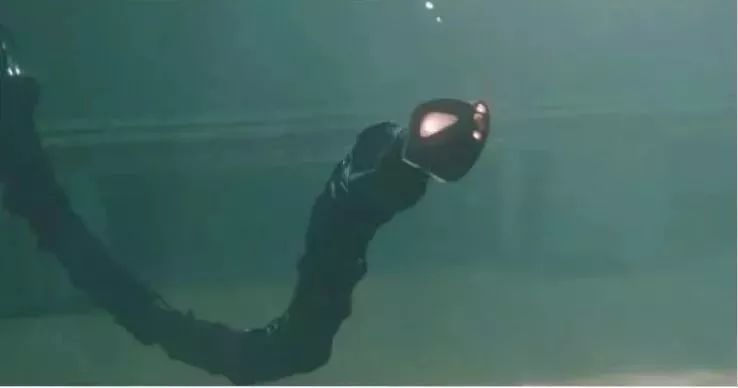 类似蛇的机器人,设计用于深水下监测和修复潜水员或潜水艇无法进入的深海电缆和灌溉管。不知为何,它被设计成可怕的黑色和红眼睛。