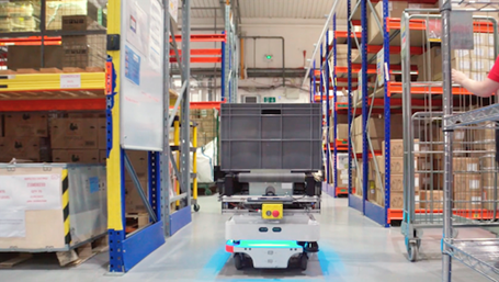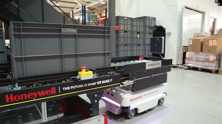 位于英国普尔的霍尼韦尔安全与生产力解决方案集团(Honeywell Safety & Productivity Solutions, 原Honeywell Analytics),致力于生产用于近海石油和矿业开采的气体检测设备,以及家用消费级检测设备。2016年起,霍尼韦尔广泛着手改善生产自动化和机器人技术,以实现原材料和组装部件的自动化运输。这些物料原本由工厂员工用手推车在约9.1万平方米的工厂内移动运输。此外,按工厂布局来看,储物仓库位于一层,与生产区域分属两个楼层,若想实现物料运输的自动化,并非是桩易事。