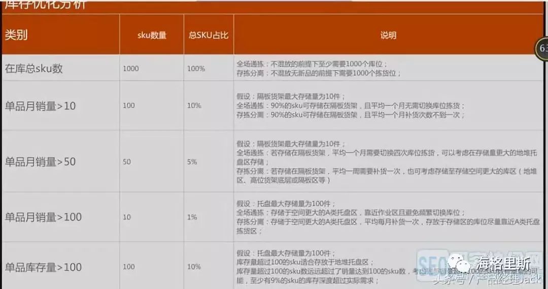 (11)库存合并优化:一个库位不要有太多的SKU。(个人认为最多6个,且要按规范存放)