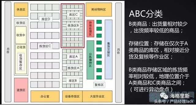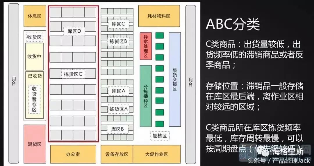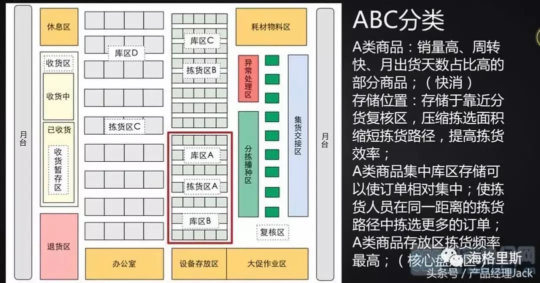 (8)A类商品:销量高、周转快、月出货占比高。把这一类商品统一放至到靠近分货区及复合区位置。