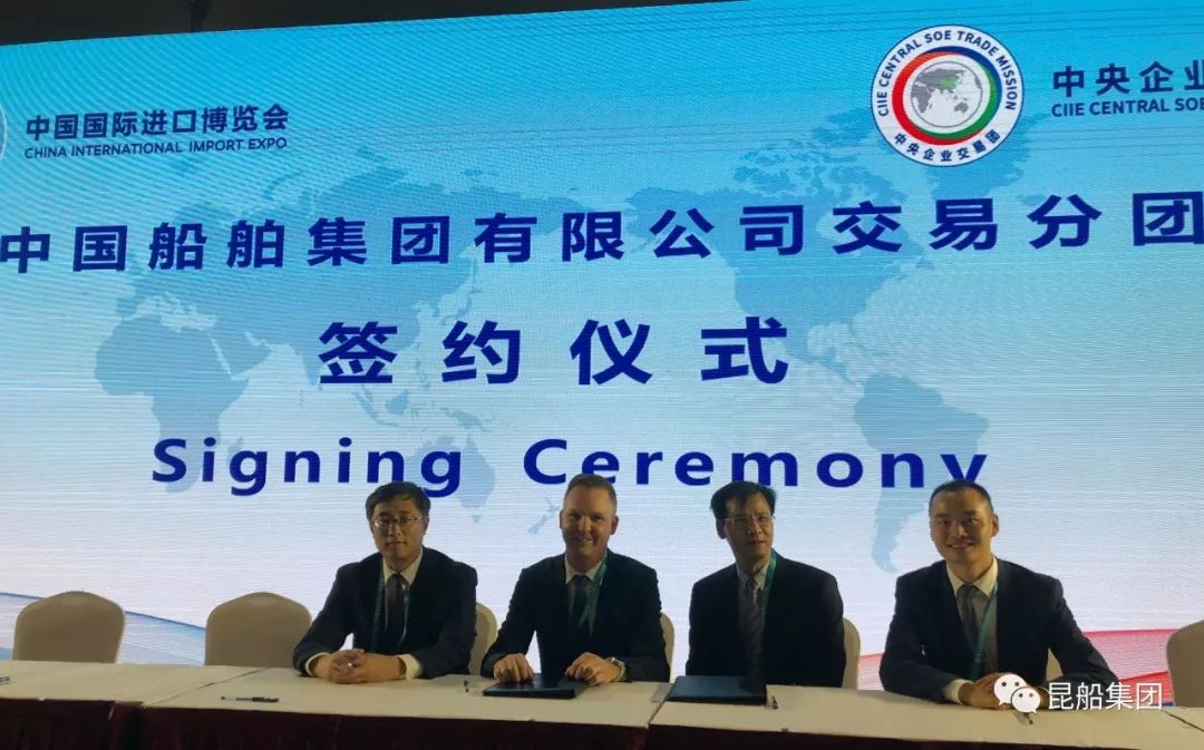 11月6日,在第二届中国国际进口博览会上,中国船舶集团有限公司与国外重要合作伙伴举行签约仪式。