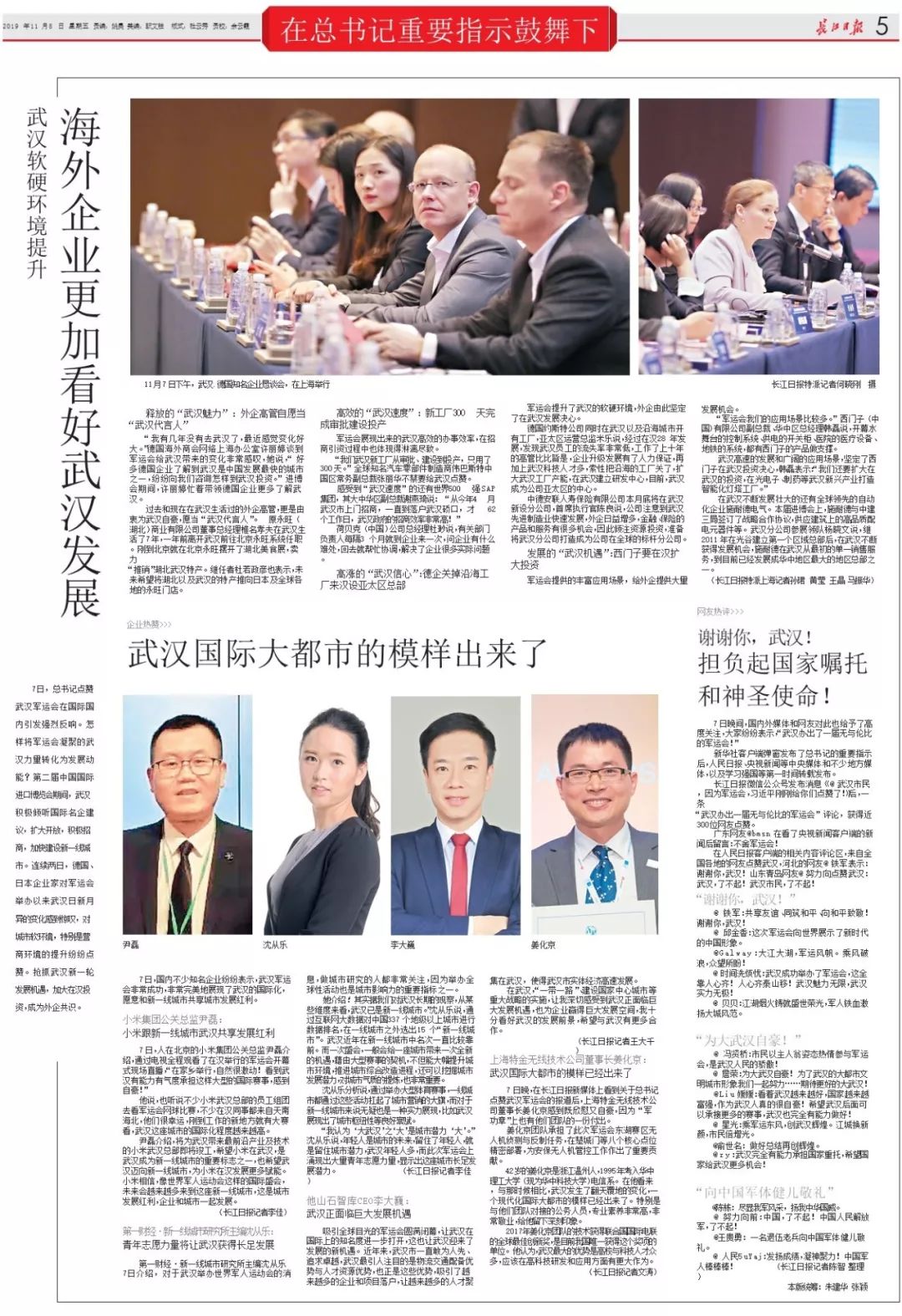《长江日报》11月8日5版对此次恳谈会进行了整版报道:武汉软硬环境提升,海外企业更加看好武汉发展。 |