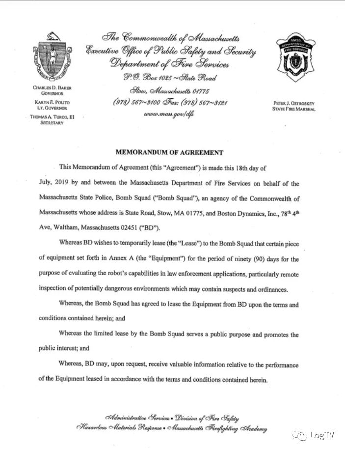 近日,据美国波士顿的新闻电台Wbur爆料,马萨诸塞州警察局成为美国第一个使用波士顿动力公司四足机器人Spot的执法机构。根据美国公民自由联盟(ACLU)曝光的马萨诸塞州警察局与波士顿动力公司的合同显示,马萨诸塞州警察局拆弹小队从波士顿动力公司租借了Spot机器狗,租期三个月,从8月开始,一直持续到11月。