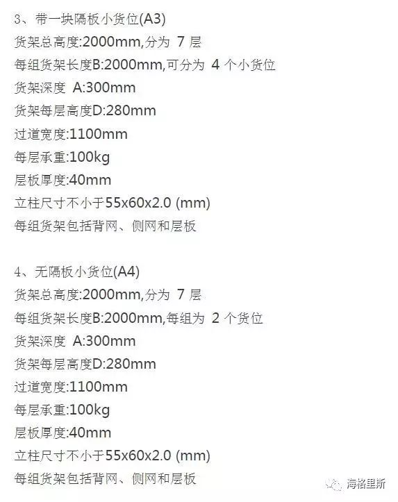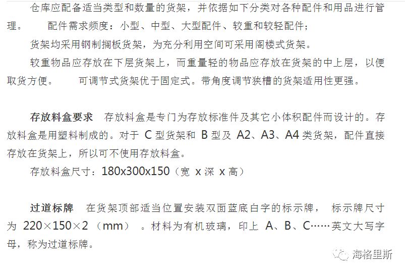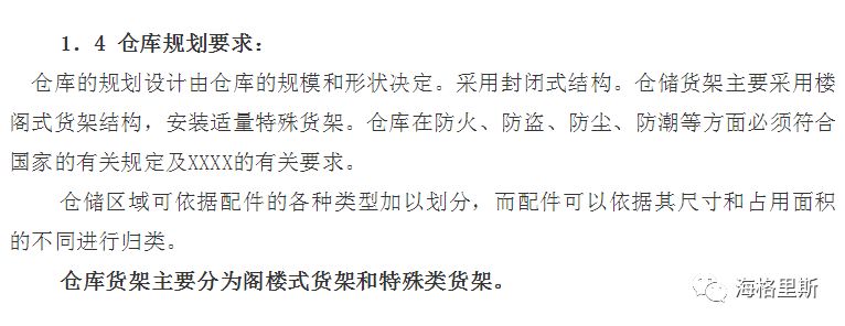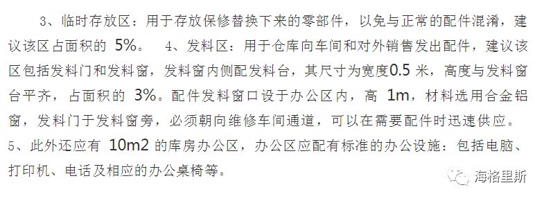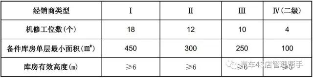 1.3 配件仓库规模:根据经销商不同规模,推荐配件仓库面积如下: