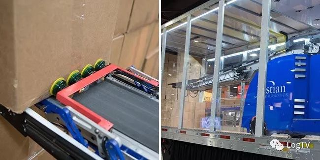 卸货:ULTRA机器人驶入货车车厢—机械臂顶端的吸盘夹具抓取货物—拉动货物后移至机器人的铰接式输送机上—货物通过输送机进入仓库