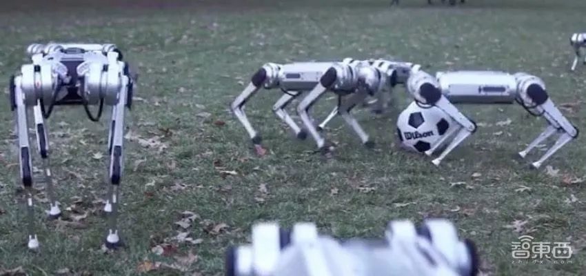 上周MIT晒出了一段一群四足机器人Mini Cheetah集体踢足球的短片,视频中Mini Cheetah进行了一场激烈的足球竞赛,还有机器人在比赛中不慎被撞翻,不过它立马灵活翻身重新投入了比赛。