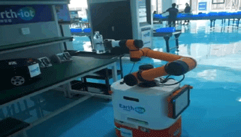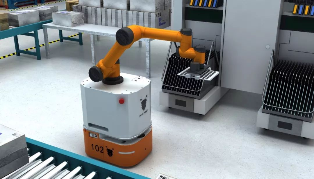 M8底盘可以适配各种类型的机械手臂,能够精准的实现将货物从A点抓取到B点摆放。