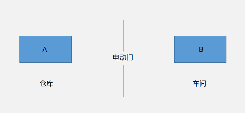 如现在有一任务需求为:派遣移动机器人把料架从仓库A点运输至车间产线B点,并且车间与仓库之间有一电动门,当移动机器人将料架运输至产线B点时需要播放音乐提醒。