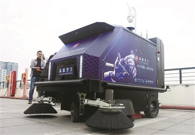 作为“云上城管”二期系统的“前线尖兵”,一台5G无人驾驶大型环卫机器人“未来卫士”也在下城区投入使用。这台5G无人驾驶大型环卫机器人具有人工智能识别垃圾和人体检测,能实现全程3D自主建图与定位导航能力,采用了基于5G和云技术的多种传感器融合和AI智能环境感知和清扫技术,能实现360度沿边无死角清扫,成为城市在人工智能背景下的“新时代环卫”工作的新利器。“环卫机器人可实现每小时扫地7000平方米,续航能力6-8小时,相当于6名环卫工人一天的工作量。”张毅恒介绍。