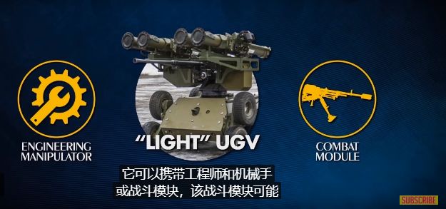 2、“轻型” UGV,重量200公斤。它可以携带工程师操纵器或战斗模块。
