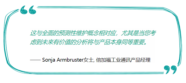“这将大大简化用户的日常工作,” Armbruster女士谈到由倍加福初创企业Neoception开发这种软件服务所提供的优势。“这与全面的预测性维护概念相对应,尤其是当您考虑到未来有价值的分析将与产品本身同等重要。” 她坚定地补充道。
