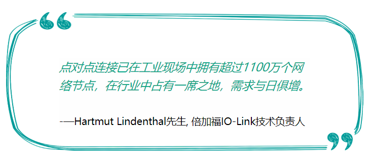 IO-Link日渐成熟,IO-Link 委员会不断扩容,并由IO-Link委员会发起IO-Link通信标准。倍加福IO-Link技术负责人,Hartmut Lindenthal先生说:“现在工业现场已经拥有超过1100万个网络节点,点对点连接已在行业中占有一席之地,需求与日俱增。” 从一开始,他就与倍加福的同事一起参与研究IO-Link的设备需求,以实现自动化环境中可靠的双向通信。