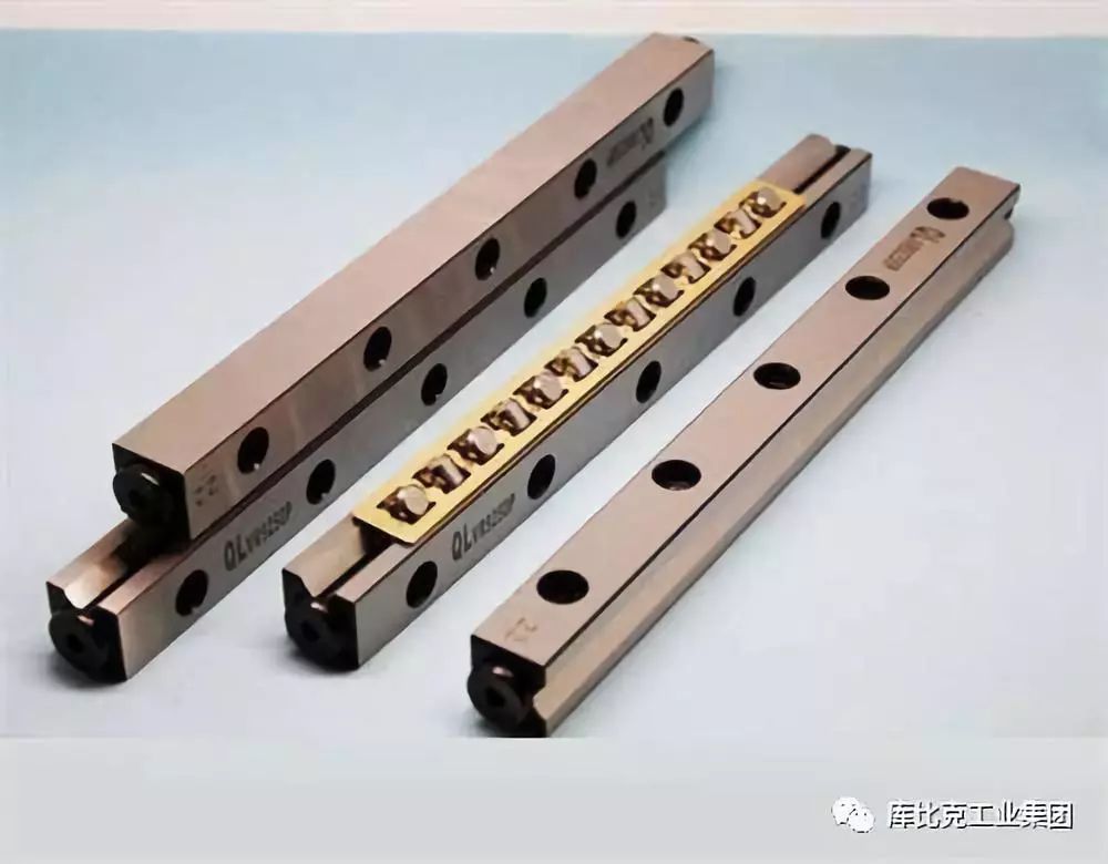直线滚柱导轨系统是平面导轨与直线滚柱导轨的组合,用滚柱安装在平行导轨上,用滚柱代替钢球承载机床的运动部件。优点是接触面积大、承载负荷大、灵敏度高。从床身尾部看,支架与滚柱置于平面导轨的顶面和侧面,为了获得高精度,在机床工作部件和支架内面之间,设置一块楔板,使预加负载作用于支架的侧面。
