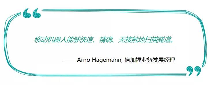 Hagemann解释了工作原理,“到目标物体的距离及其表面信息可以通过光从发射器传播到接收器所需的时间以及反射的能量来确定。” 通过每秒进行252,000次单独测量,以及其0.014°的角度分辨率,移动机器人能够快速、精确、无接触地扫描隧道。