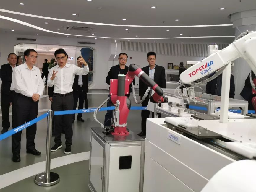 在吴丰礼的陪同下,梁维东书记一行参观了拓斯达展厅、机械手组装车间。吴丰礼向梁维东书记一行介绍了拓斯达的发展历程、产品应用领域、生产经营情况以及未来发展规划。吴丰礼表示,拓斯达是一家做工业机器人和工业自动化的高科技企业,专注于以工业机器人为代表的智能装备的研发、制造、销售,是集“系统集成+本体制造+软件开发+工业互联网”四位一体的智能制造综合服务商。