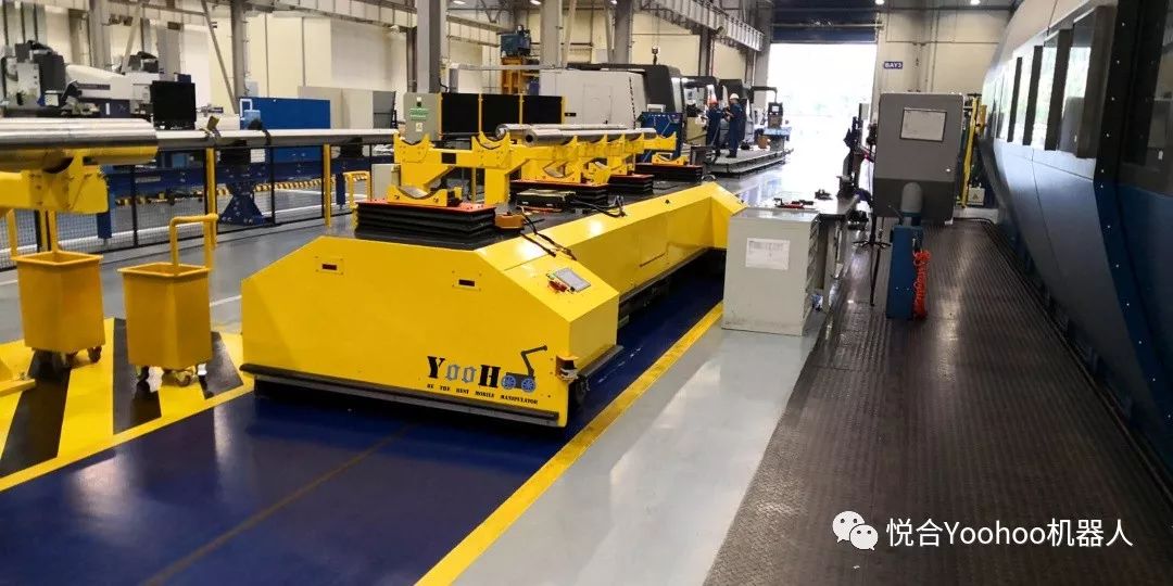 重型工业领域的搬运作业,过去多采用固定吊装及人工驾驶大型搬运车辆进行搬运的方式,搬运效率低下,流程死板,搬运成本占比过大。以YooHoo自主研制的重载型搬运机器人作为执行载体,搭配相应的生产物料控制系统MCS组成的智能柔性搬运机器人系统,可以实现重型生产物料的多点自由柔性搬运及过程管理,在石油石化、汽车模具、高铁、飞机制造等重型工业领域,具有非常强的应用价值。
