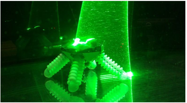 研究者通过初步试验证实了他们的想法是切实有效的,虽然机器人的结构还比较简单,处于一个概念的阶段,但是可以看得到它有很高的潜在应用价值,包括可以帮助水下机器人在水流中保持稳定,或者协助行走,这种概念也可以移驾到别的水下机器人系统上,通过软体驱动器来形成一些连续的曲面和水流发生交互。在未来的研究中,研究者计划更加准确的建模,以及加入更多的反馈控制,来制造更可靠的水下机器人系统。