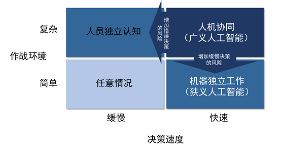 决策辅助工具将机器的优势与作战人员的优势相结合。机器处理大量数据,对数据进行过滤或查找,人类负责理解数据并将其应用于不同的情况中。在复杂而苛刻的环境中,人机协同的能力可以超越人或机器。人机协同的性能优化,需要仔细考虑技术系统性能和人员因素。