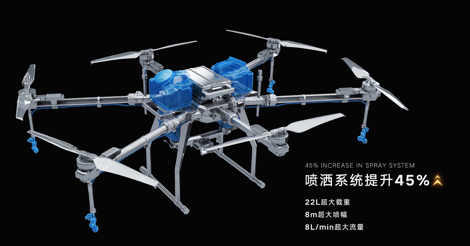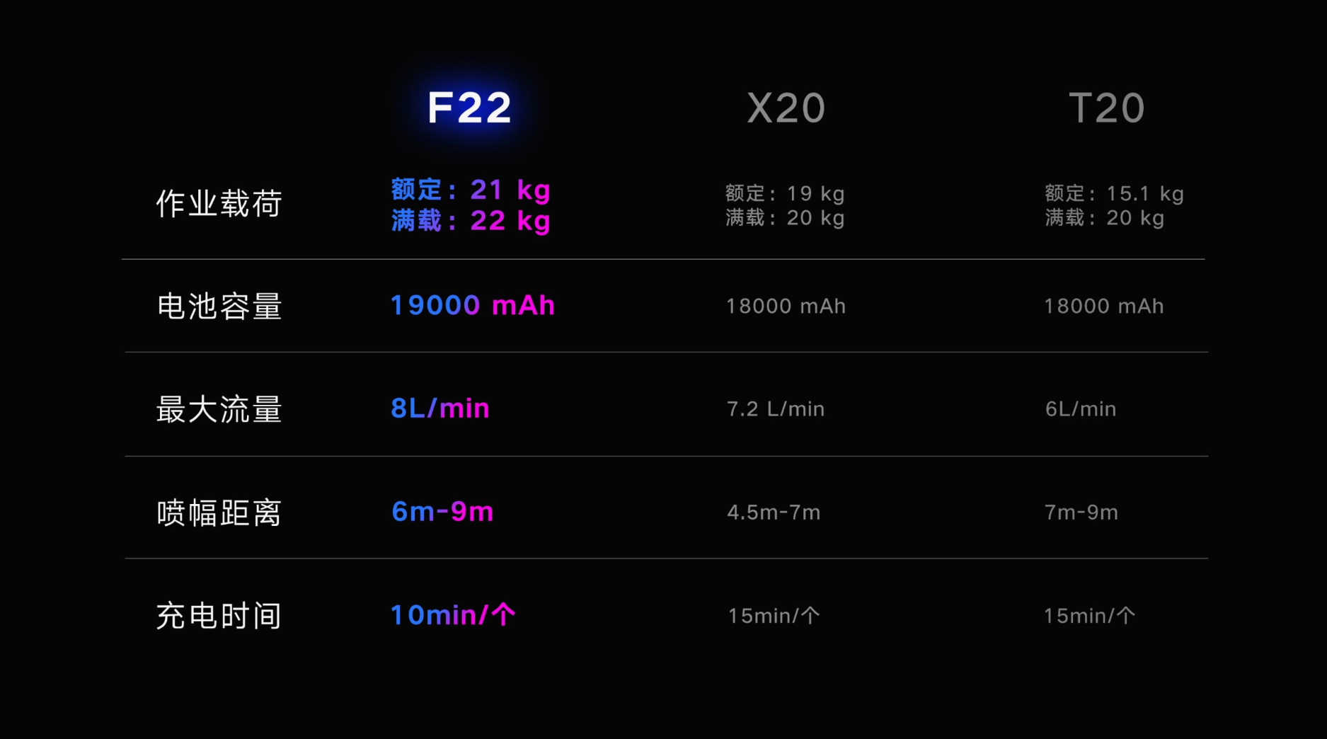 本次发布的新品是代号为F22的植保无人机,其中F22的“F”是农业 “Farming” 的首字母,“22”代表了他的最大载重是22千克。