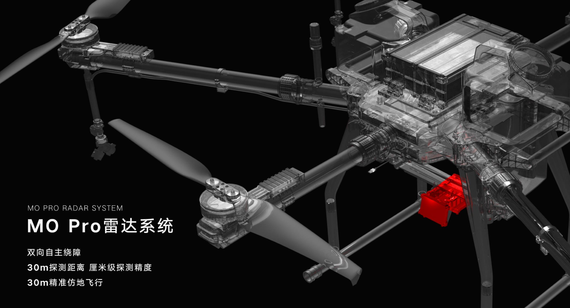 2.仿地雷达:30米仿地,仿地精准±5厘米。