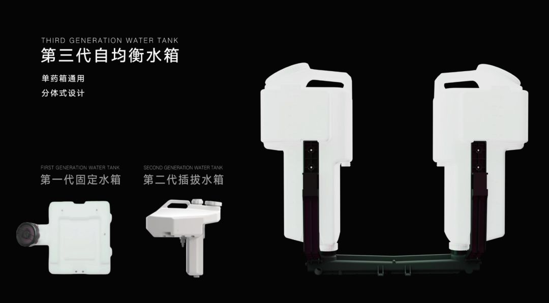 正大航空创新采用分体式自均衡水箱让在作业的过程中左手一个药箱右手一个药箱让人体受力均衡,这样的双药箱设计让打药更加轻松。