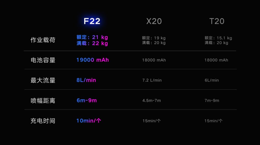 本次发布的新品是代号为F22的植保无人机,其中F22的“F”是农业 “Farming” 的首字母,“22”代表了它的最大载重是22千克。