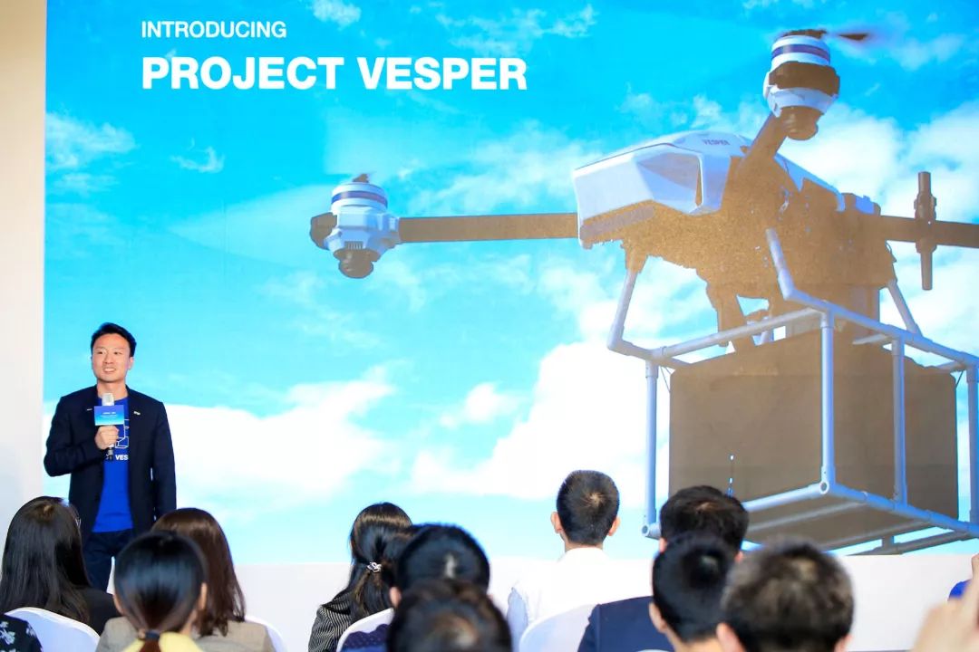 在项目沟通会现场,龚槚钦向媒体演示了 Vesper 无人机试运行场景。