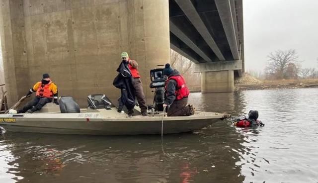 12月3日,警方潜水员在位于美国密苏里州中部的一条河中开展水下搜寻工作,派出了潜水员、船只、无人机以及搜寻犬等多种方式寻找。